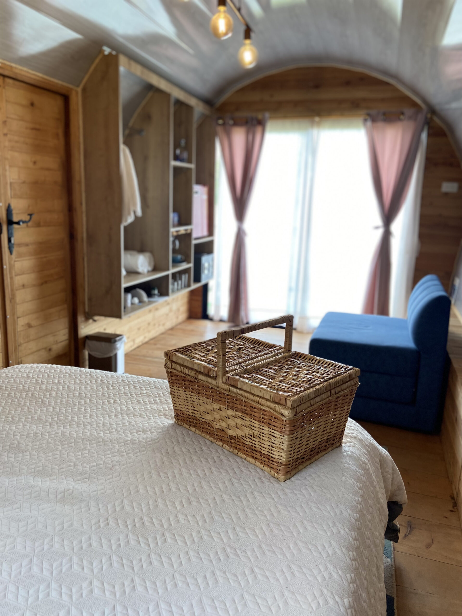 Vive con tu pareja la aventura de un hospedaje en una Carreta con un interior de lujo al mejor estilo del lejano oeste, en Glamping La Cepa te esperamos para que vivas unos días de descanso y deleite en el embalse de Guatapé.